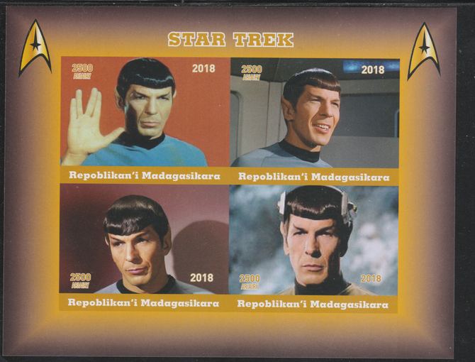 Madagascar 2018 Star Trek - Spok imperf sheetlet containing 4 values unmounted mint. Note this item is privately produced and is offered purely on its thematic appeal.