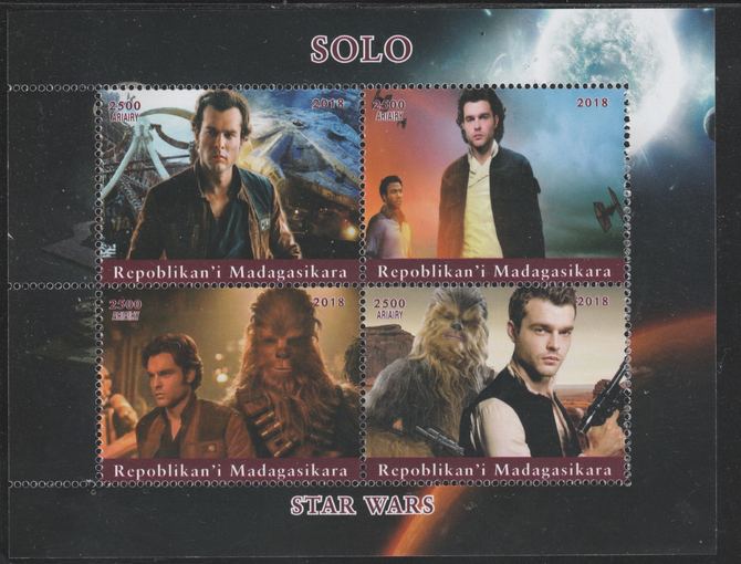 Madagascar 2018 Star Wars - Solo perf sheetlet containing 4 values unmounted mint. Note this item is privately produced and is offered purely on its thematic appeal.
