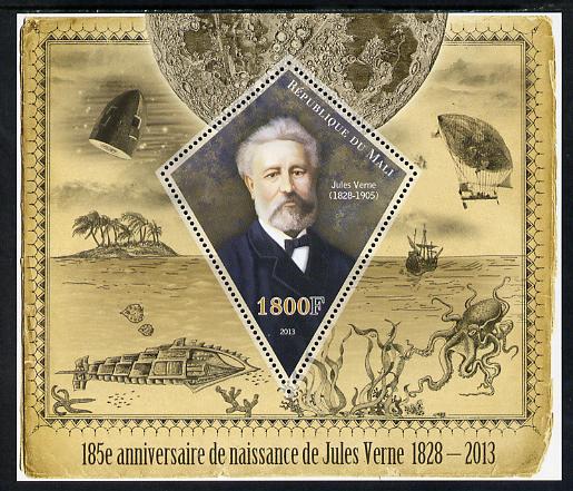 Mali 2013 185th Birth Anniversary of Jules Verne perf s/sheet containing one diamond shaped value unmounted mint