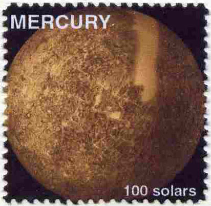 Planet Mercury (Fantasy) 100 solars perf label for inter-galactic mail unmounted mint on ungummed paper