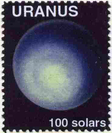 Planet Uranus (Fantasy) 100 solars perf label for inter-galactic mail unmounted mint on ungummed paper