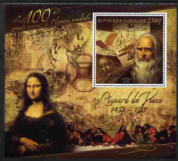Gabon 2010-12 Greatest Personalities in World History - Leonardo da Vinci large perf s/sheet unmounted mint