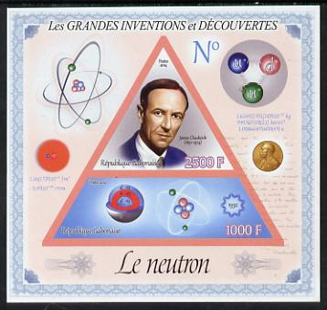 Gabon 2014 Great Inventions & Discoveries - James Chadwick & the Neutron imperf sheetlet containing two values (triangular & trapezoidal shaped) unmounted mint