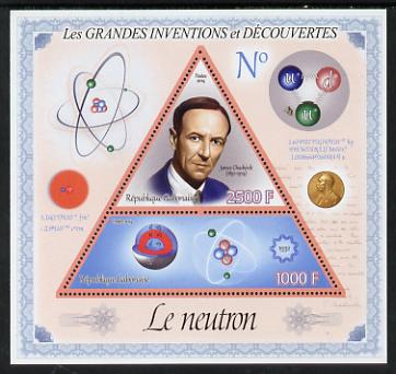Gabon 2014 Great Inventions & Discoveries - James Chadwick & the Neutron perf sheetlet containing two values (triangular & trapezoidal shaped) unmounted mint