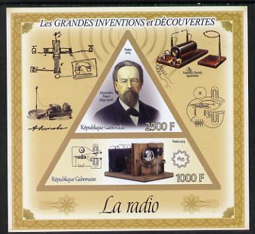 Gabon 2014 Great Inventions & Discoveries - Radio imperf sheetlet containing two values (triangular & trapezoidal shaped) unmounted mint