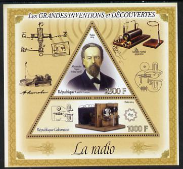 Gabon 2014 Great Inventions & Discoveries - Radio perf sheetlet containing two values (triangular & trapezoidal shaped) unmounted mint