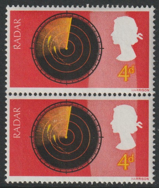 Great Britain 1967 British Discovery 4d Radar vert pair with fine dry print of red unmounted mint SG752var