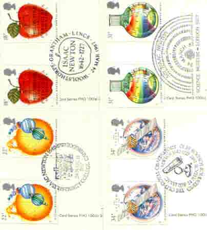 Great Britain 1987 Newton's Principles of Mathematics set of 4 PHQ cards with appropriate gutter pairs each very fine used with first day cancels