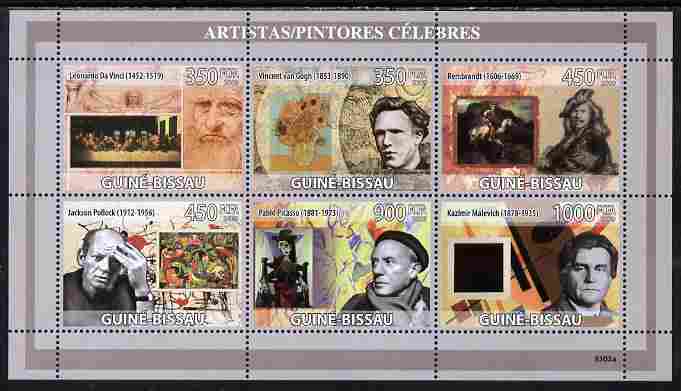 Guinea - Bissau 2009 Greatest Painters perf sheetlet containing 6 values unmounted mint Yv 2910-15, Mi 4197-4202
