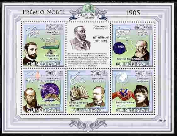 Guinea - Bissau 2009 Nobel Prize Winners for 1905 perf sheetlet containing 5 values unmounted mint Yv 2956-69, Mi 4253-57