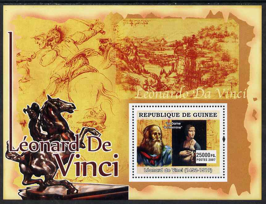 Guinea - Conakry 2007 Leonardo da Vinci (La Dame,a l'Hermine) perf souvenir sheet unmounted mint