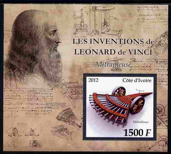 Ivory Coast 2012 Inventions of Leonardo da Vinci #3 Machine Gun large perf s/sheet unmounted mint