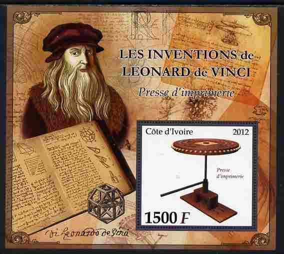 Ivory Coast 2012 Inventions of Leonardo da Vinci #4 Printing Press large perf s/sheet unmounted mint