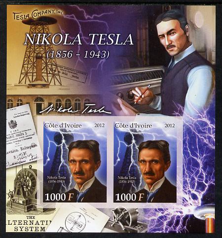 Ivory Coast 2012 Nikola Tesla imperf sheetlet containing 2 values unmounted mint