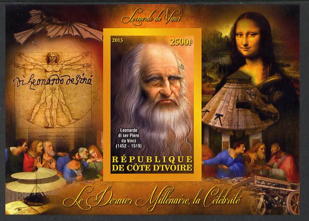 Ivory Coast 2013 Celebrities of the last Millennium - Leonardo da Vinci imperf deluxe sheet containing one rectangular value unmounted mint