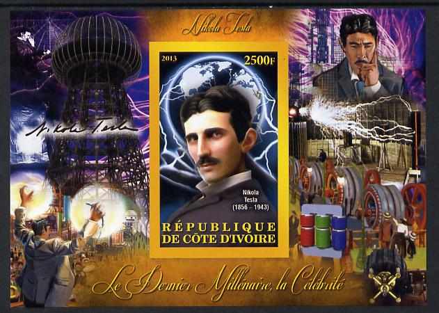 Ivory Coast 2013 Celebrities of the last Millennium - Nikola Tesla imperf deluxe sheet containing one rectangular value unmounted mint