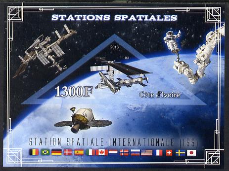 Ivory Coast 2013 Space Stations - International Space Station (ISS) imperf m/sheet containing triangular value unmounted mint