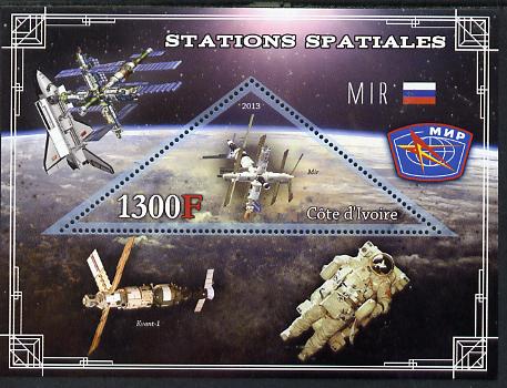 Ivory Coast 2013 Space Stations - MIR perf m/sheet containing triangular value unmounted mint