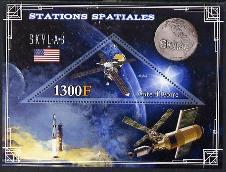 Ivory Coast 2013 Space Stations - Skylab perf m/sheet containing triangular value unmounted mint