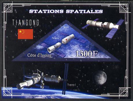 Ivory Coast 2013 Space Stations - Tiangong imperf m/sheet containing triangular value unmounted mint