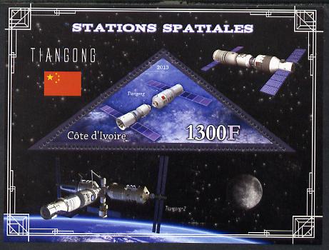 Ivory Coast 2013 Space Stations - Tiangong perf m/sheet containing triangular value unmounted mint