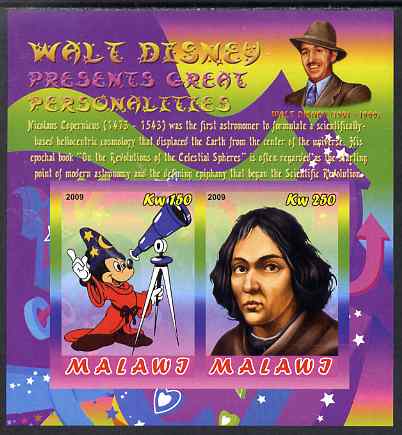 Malawi 2009 Walt Disney Presents Great Personalities - Copernicus imperf sheetlet containing 2 values unmounted mint