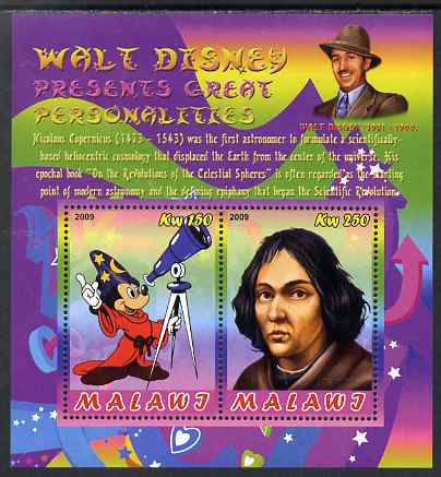 Malawi 2009 Walt Disney Presents Great Personalities - Copernicus perf sheetlet containing 2 values unmounted mint