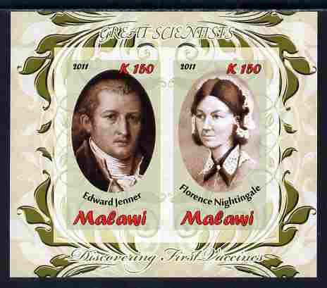 Malawi 2011 Scientists - Nightingale & Jenner imperf sheetlet containing 2 values unmounted mint