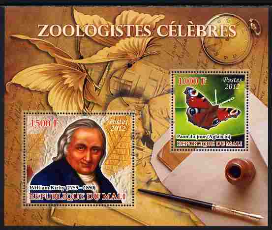 Mali 2012 Zoological Celebrities - William Kirby large perf sheetlet containing 2 values unmounted mint