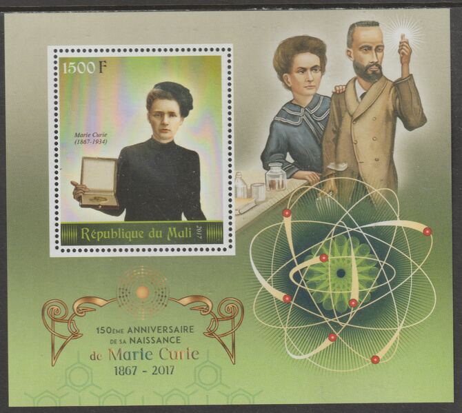 Mali 2017 Marie Curie - 150th Birth Anniversary perf m/sheet containing one value unmounted mint