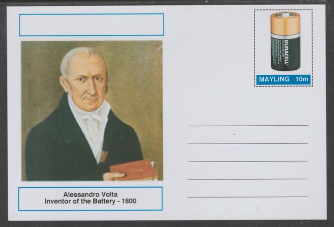 Mayling (Fantasy) Great Minds - Alessandro Volta - glossy postal stationery card unused and fine