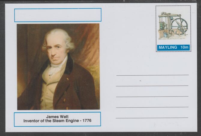 Mayling (Fantasy) Great Minds - James Watt - glossy postal stationery card unused and fine