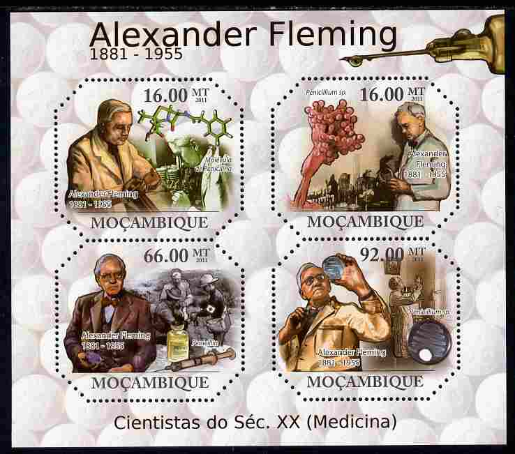 Mozambique 2011 Alexander Fleming perf sheetlet containing 4 values unmounted mint
