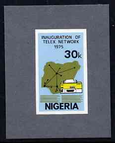 Nigeria 1975 Telex - imperf machine proof of 30k value (as issued stamp) mounted on small piece of grey card believed to be as submitted for final approval