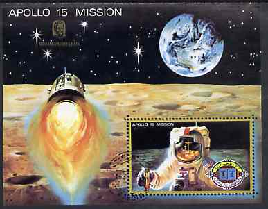 Umm Al Qiwain 1972 Apollo 15 imperf m/sheet (Astronaut & Moon surface) opt'd for Anniversary of Kepler's Birth, cto used, Mi BL 43B