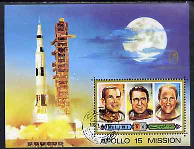 Umm Al Qiwain 1972 Apollo 15 imperf m/sheet (Astronauts & rockert Launch) opt'd for Anniversary of Kepler's Birth, cto used, Mi BL 44B