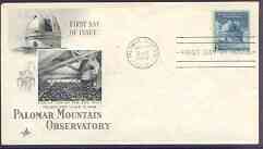 United States 1948 Dedication of Palomar Mountain Observatory on illustrated cover with first day cancel, SG 963