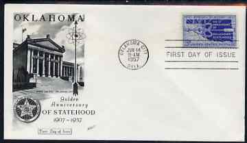 United States 1957 50th Anniversary of Oklahoma Statehood on illustrated cover with first day cancel, SG 1094