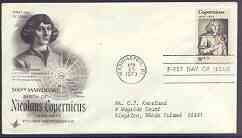 United States 1973 500th Birth Anniversary of Nicolas Copernicus (astronomer) on illustrated cover with first day cancel, SG 1489