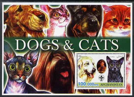 Afghanistan 2003 Dogs & Cats #1 perf m/sheet with Baden Powell & Scout Logo unmounted mint