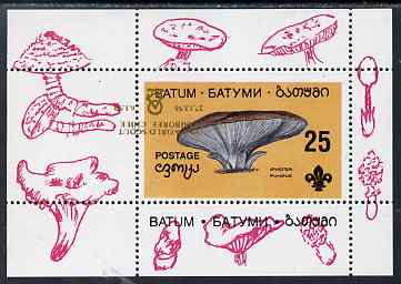 Batum 1998 World Scout Jamboree opt on 1994 Fungi 25k individual perf deluxe sheet with opt in gold inverted