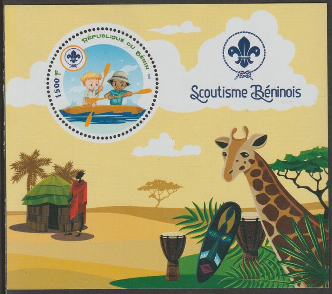 Benin 2018 Scouts #5 perf deluxe m/sheet containing one circular value unmounted mint