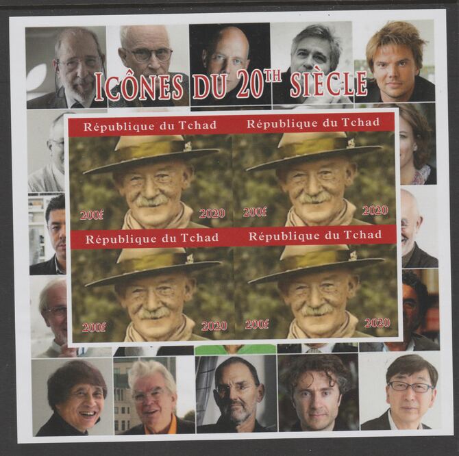 Chad 2020 Icons of the Twentieth Century - Baden Powell imperf sheetlet containing 4 values unmounted mint.