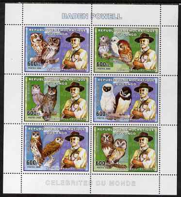 Congo 2006 Lord Baden Powell with Owls perf sheetlet containing 6 values unmounted mint