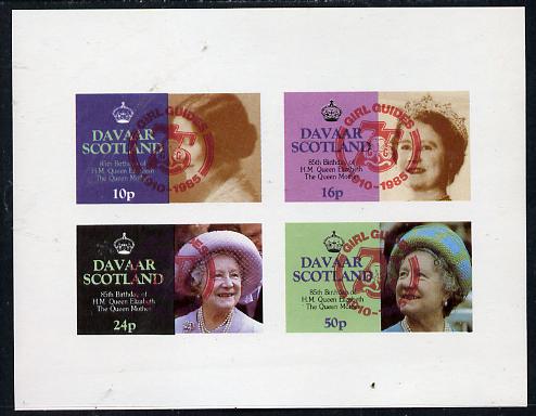 Davaar Island 1985 Life & Times of HM Queen Mother imperf set of 4 with Girl Guide 75th Anniversary opt in red unmounted mint