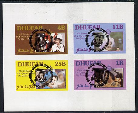 Dhufar 1985 Life & Times of HM Queen Mother imperf set of 4 with Girl Guide 75th Anniversary opt in black unmounted mint