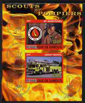 Djibouti 2007 Scouts & Fire Engines #1 imperf s/sheet containing 2 values unmounted mint. Note this item is privately produced and is offered purely on its thematic appeal