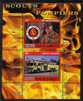 Djibouti 2007 Scouts & Fire Engines #1 perf s/sheet containing 2 values unmounted mint. Note this item is privately produced and is offered purely on its thematic appeal