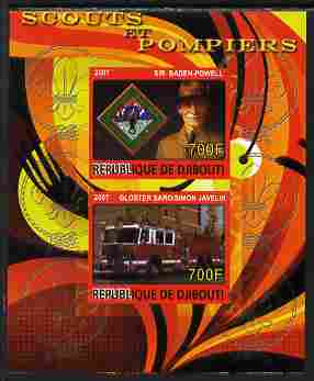 Djibouti 2007 Scouts & Fire Engines #2 imperf s/sheet containing 2 values unmounted mint. Note this item is privately produced and is offered purely on its thematic appeal