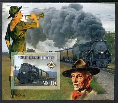 Djibouti 2007 Steam Trains #2 imperf m/sheet with Scouts in background unmounted mint